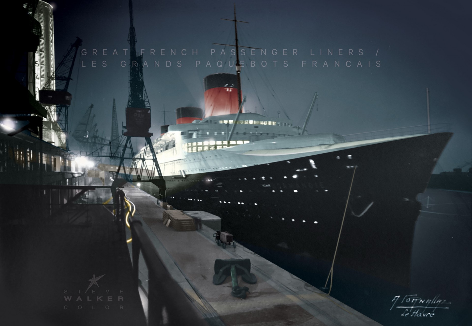 Normandie a quai au havre de nuit